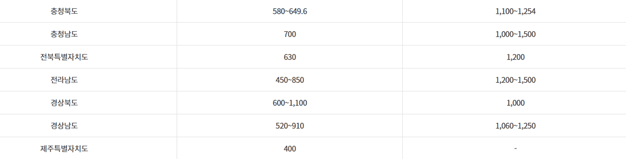| 충청북도 | 580 | 694.6 | 637.3 |