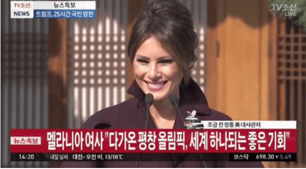 2018년 제 23회 평창올림픽에 와서는 그래도 부드러운 미소를 보여주고 있네요! "멜라니아 트럼프"