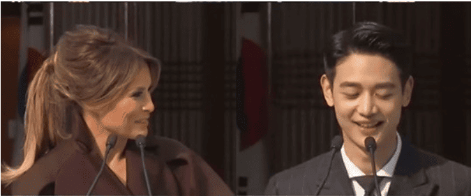 정말 도널드 트럼프와 공식 성삭에 있을때와 한국 아이돌을 보고 있을때와 표정이 천지차이네요!